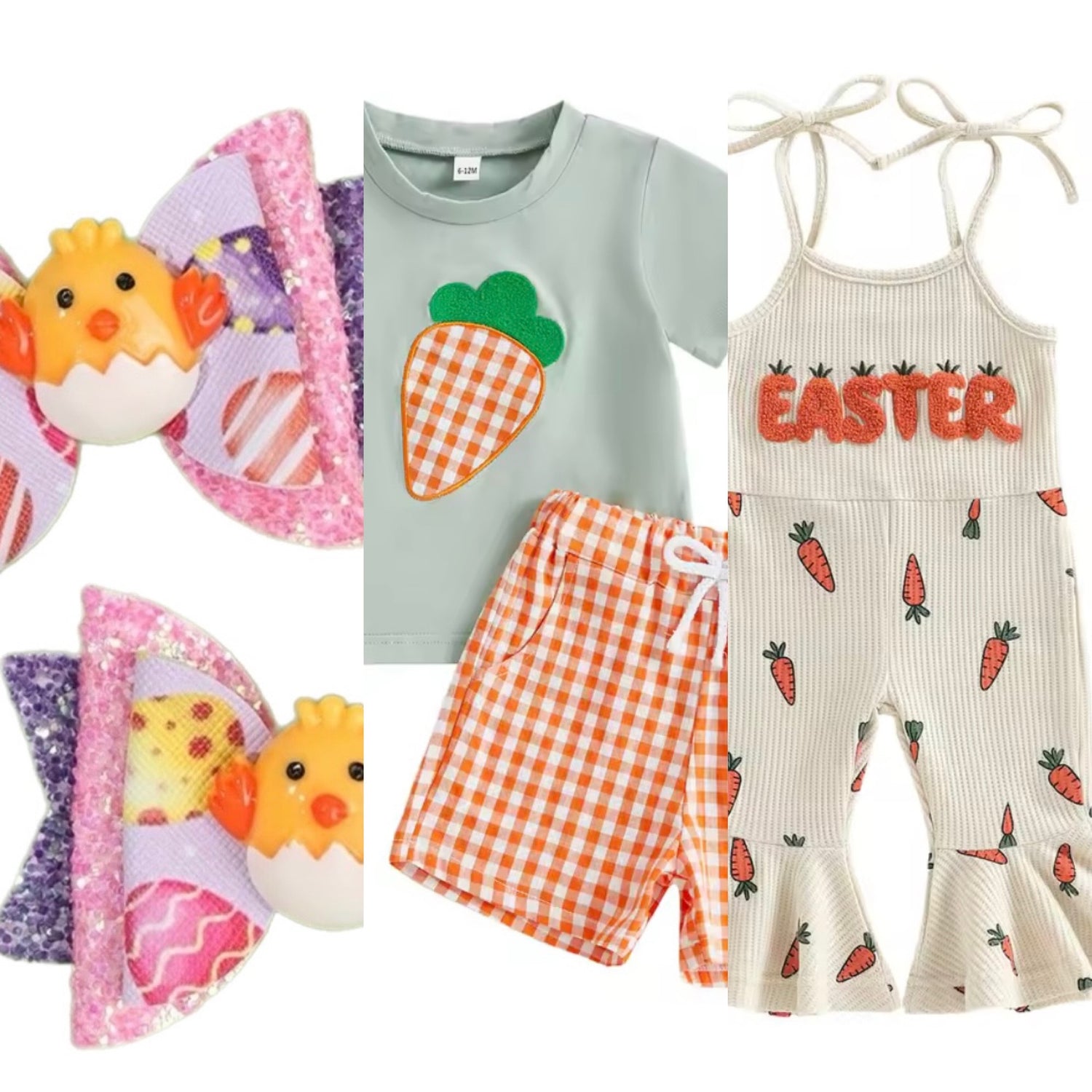 Easter outfits, hair accessories, matching family tees and Easter pajama’s!