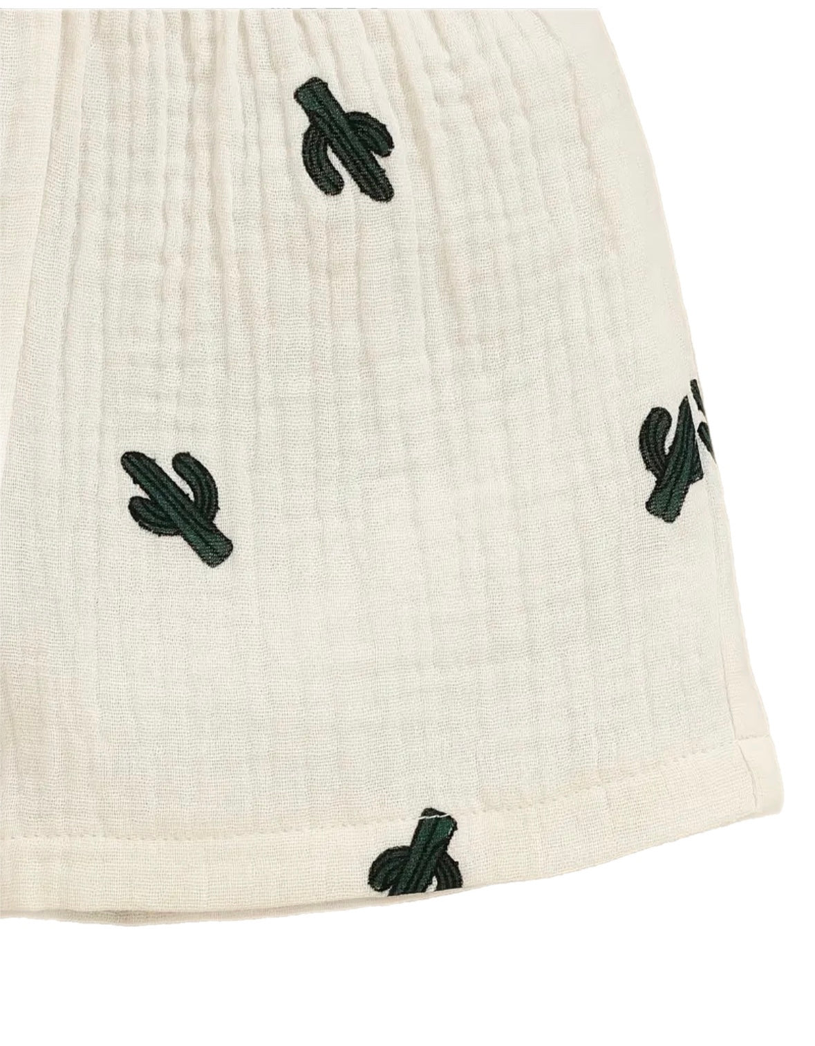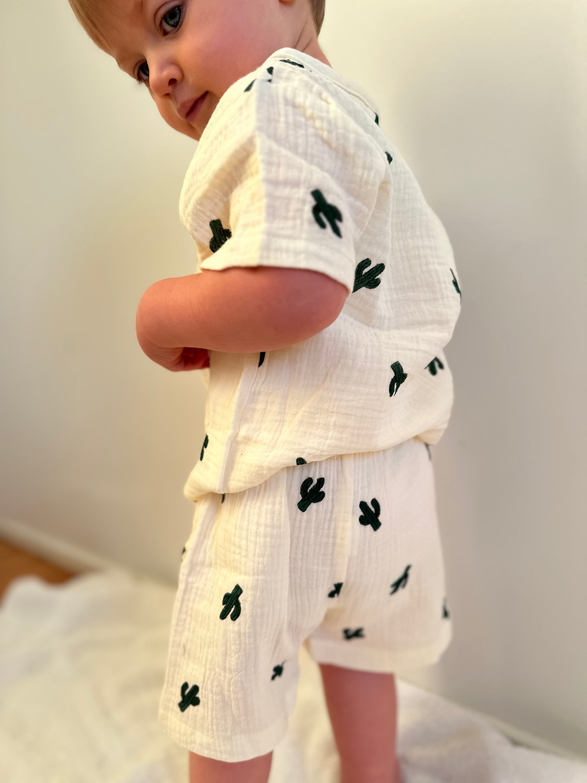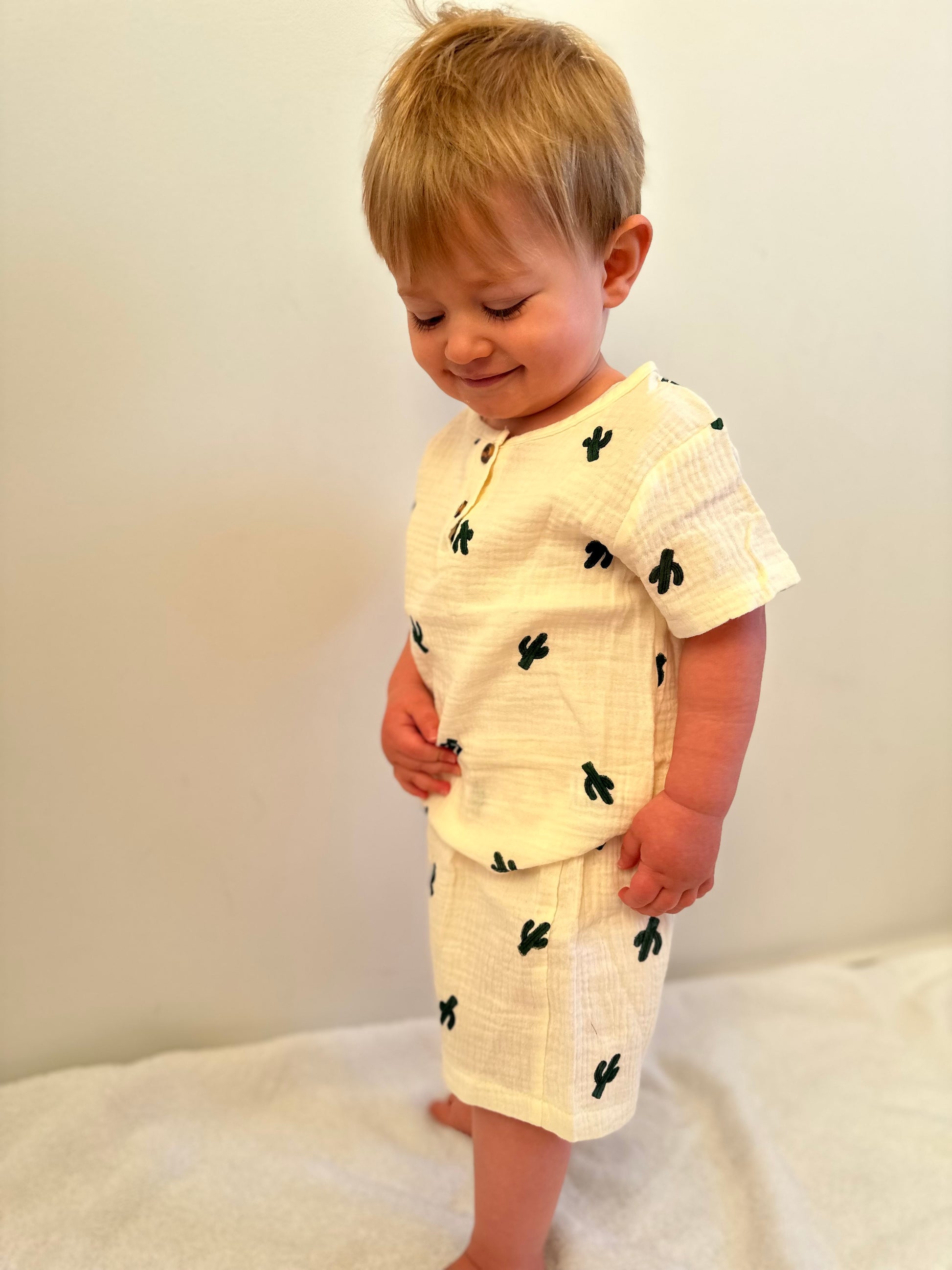 This set comes with a beautiful soft top and super cute shorts! Shorts have an easy to wear elastic waistband and the shirt is lightweight. Both feature cute little cacti plants.