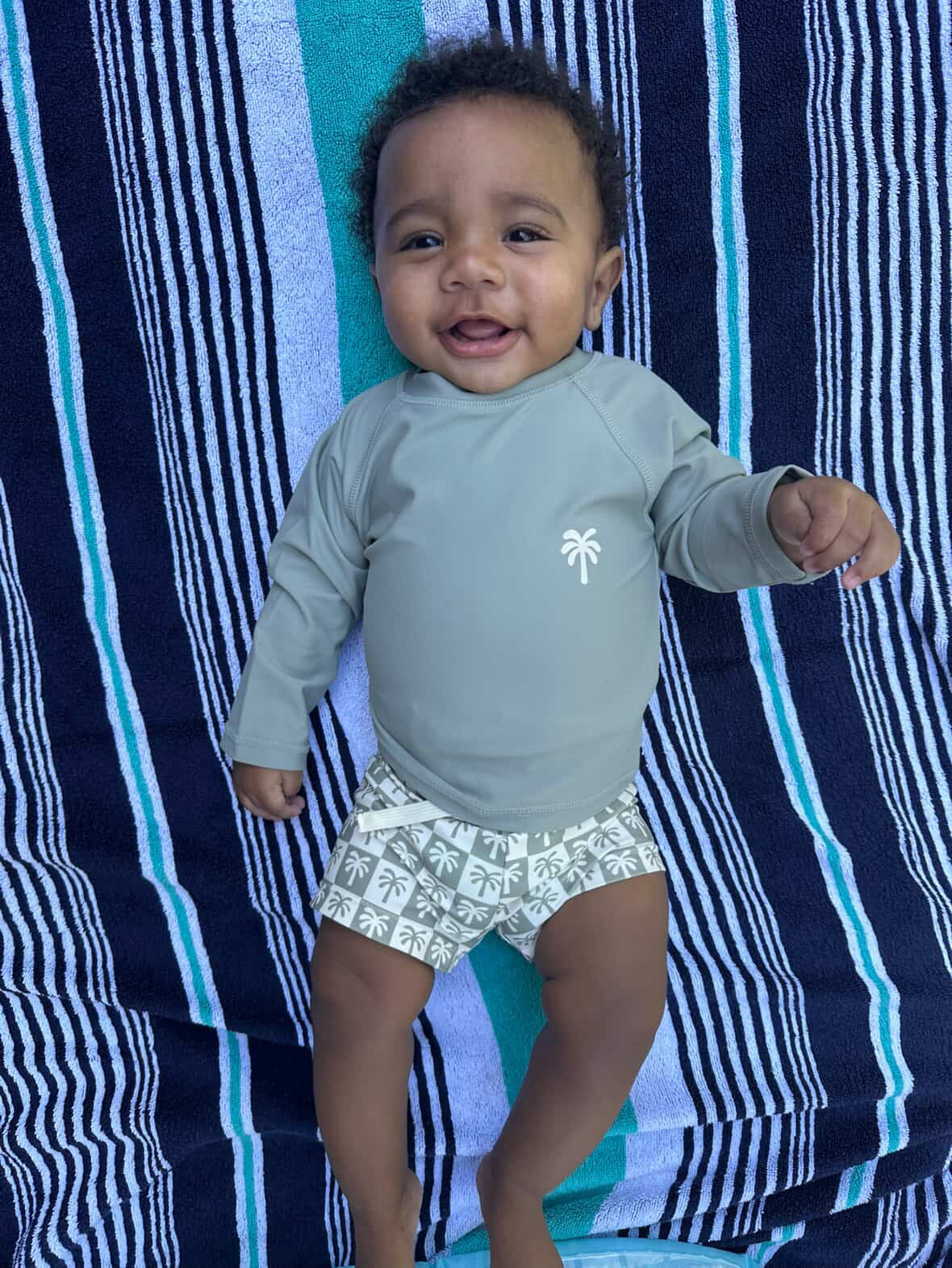 Perfect for your next beach or pool trip! Long sleeved and lightweight this costume is perfect for summer. It features a rash shirt with a rounded neckline and swim shorts to match which have an elastic waistband.