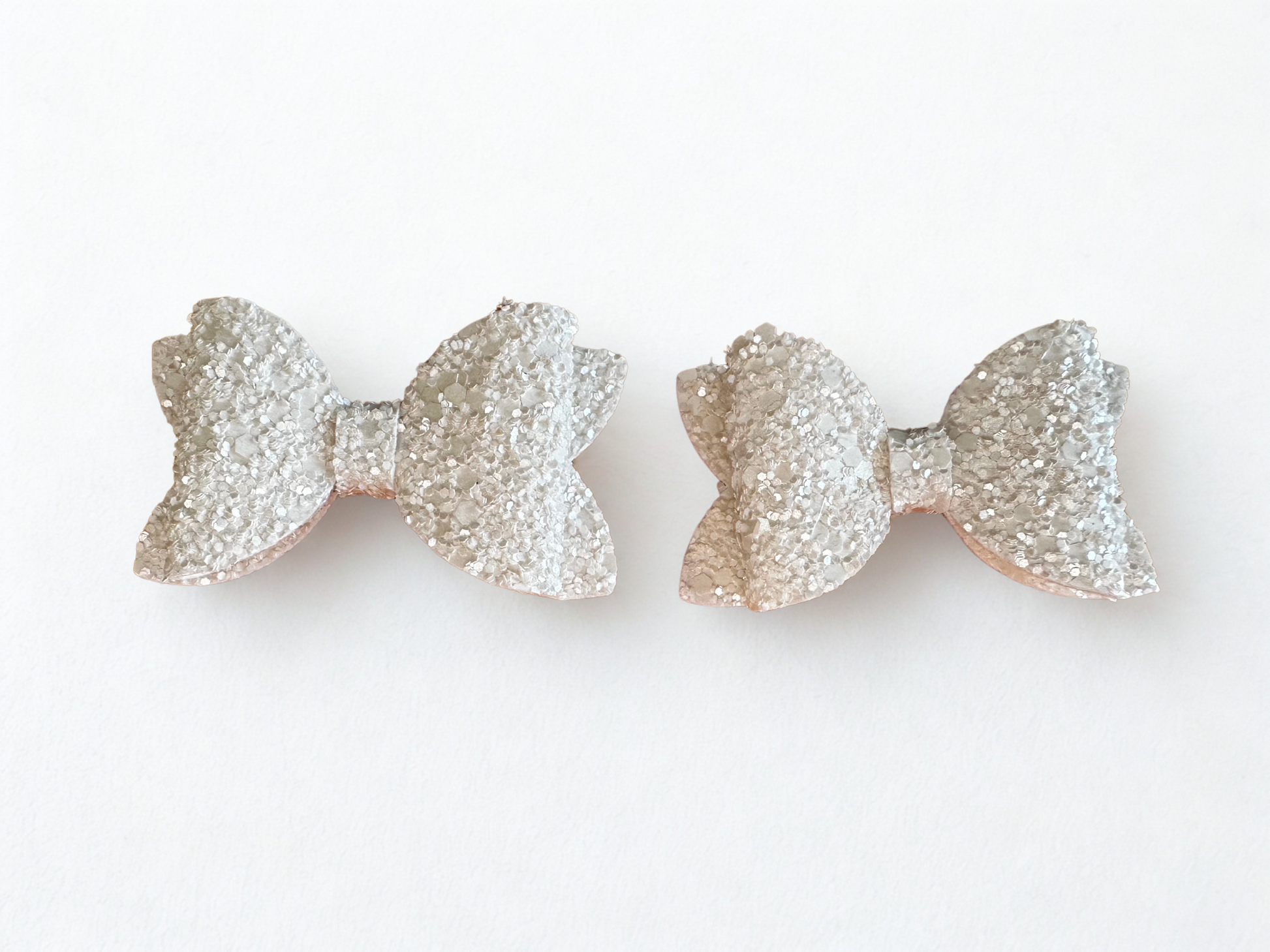 Beautifully hand crafted and handmade, our Fresh Snow Bow Set is one to adore. Featuring an amazing confetti white glitter, these bows are made to sparkle! This bow set will suit any style of hair and comes with an easy to secure alligator clip on the back.
