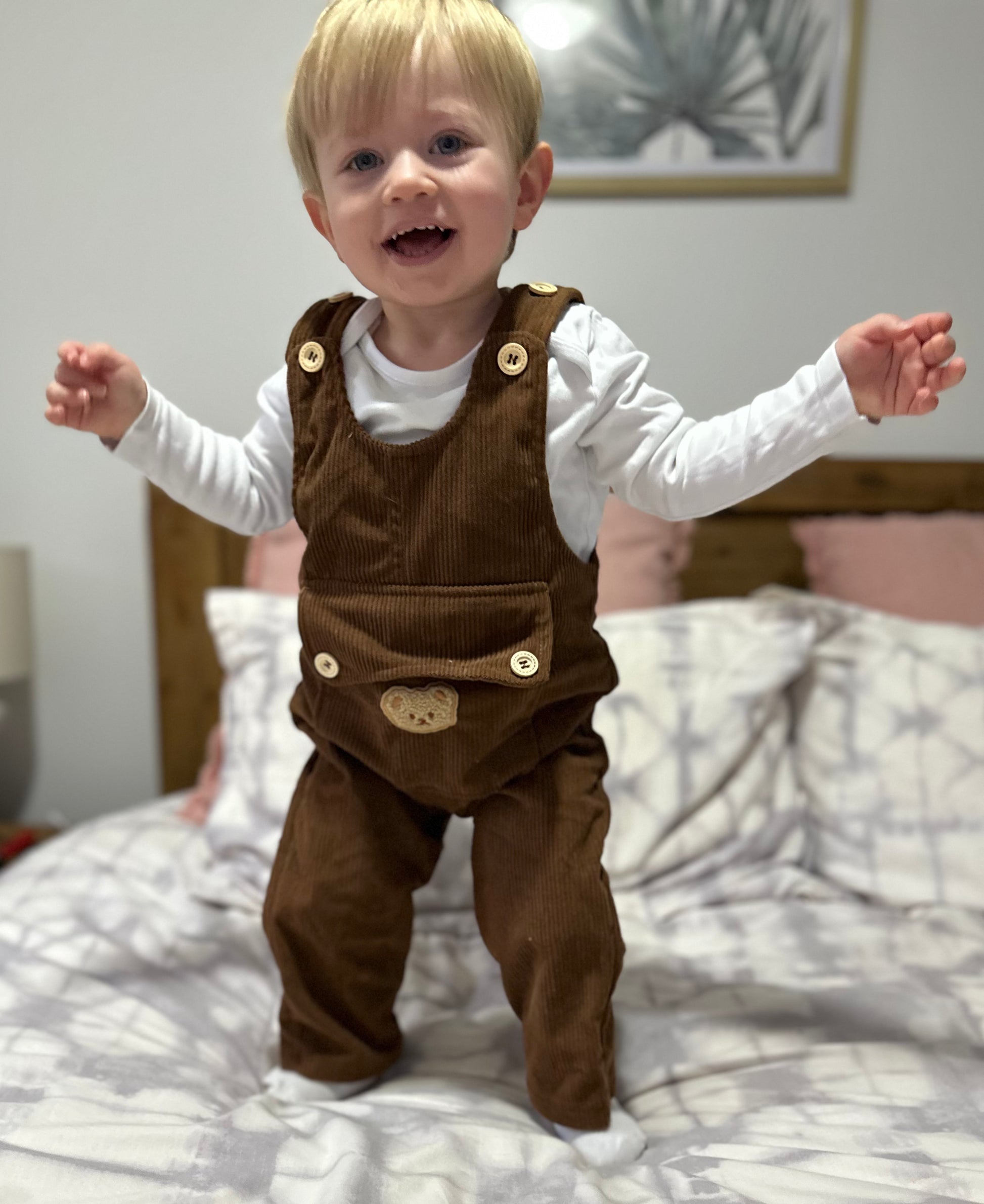 Super adorable and super cute overalls- what more do you need! The next item to add to your cart are our Going on a Bear Hunt Overalls for your little one’s. Featuring adjustable, button straps and a teddy bear pocket in the centre. These overalls are corduroy styled fabric.