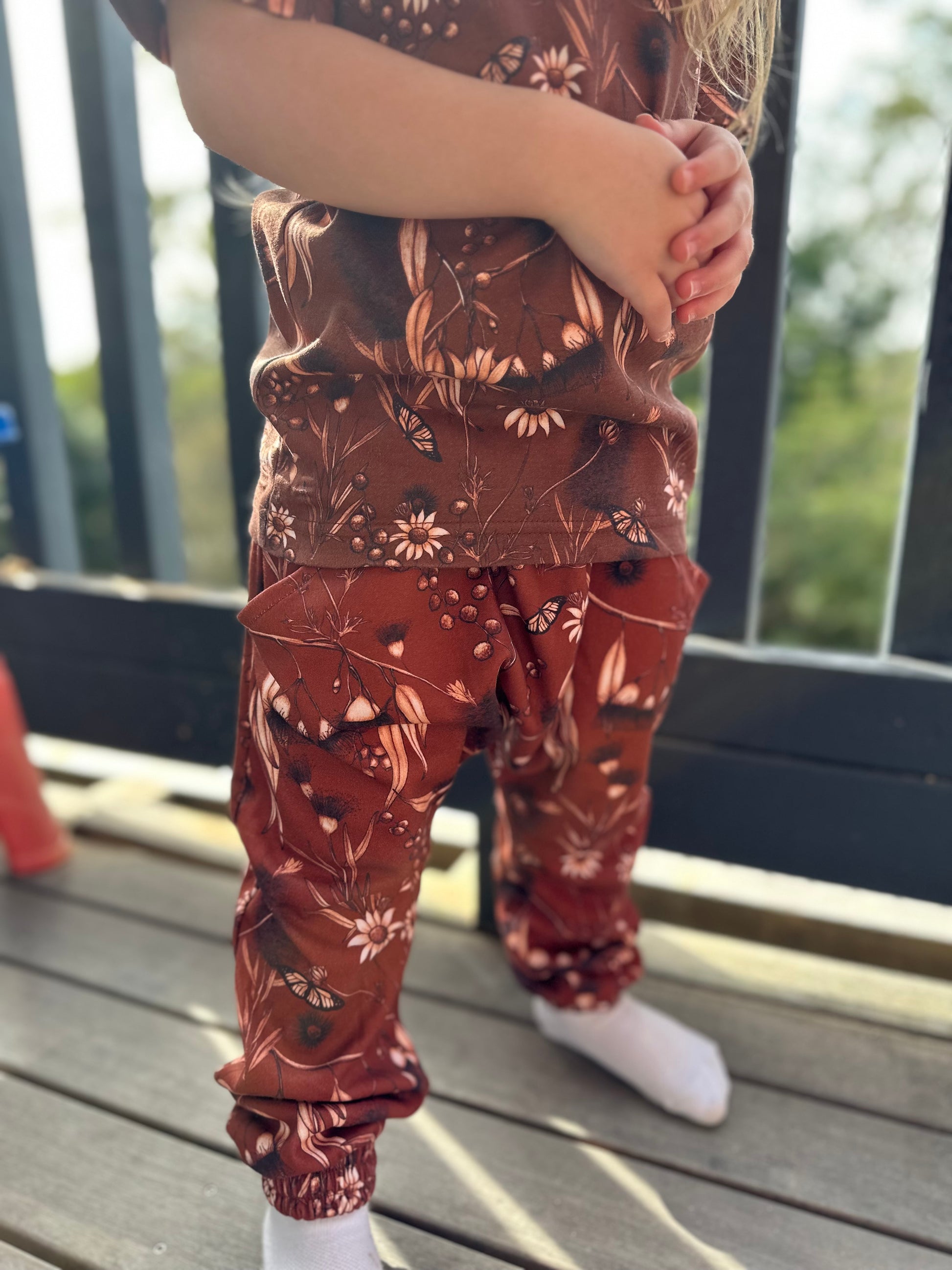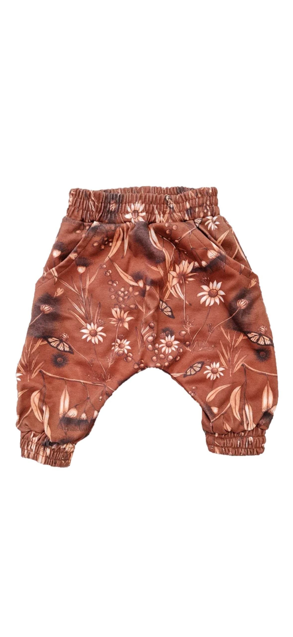 Apart of the Dusty Road Apparel collection these Botanicals Harem Pants are a must to add to your little royals wardrobe. These organic pants are fashionable and styled for comfort featuring an elastic waistband and ankle cuff’s. They also come with playful pockets for little hands.