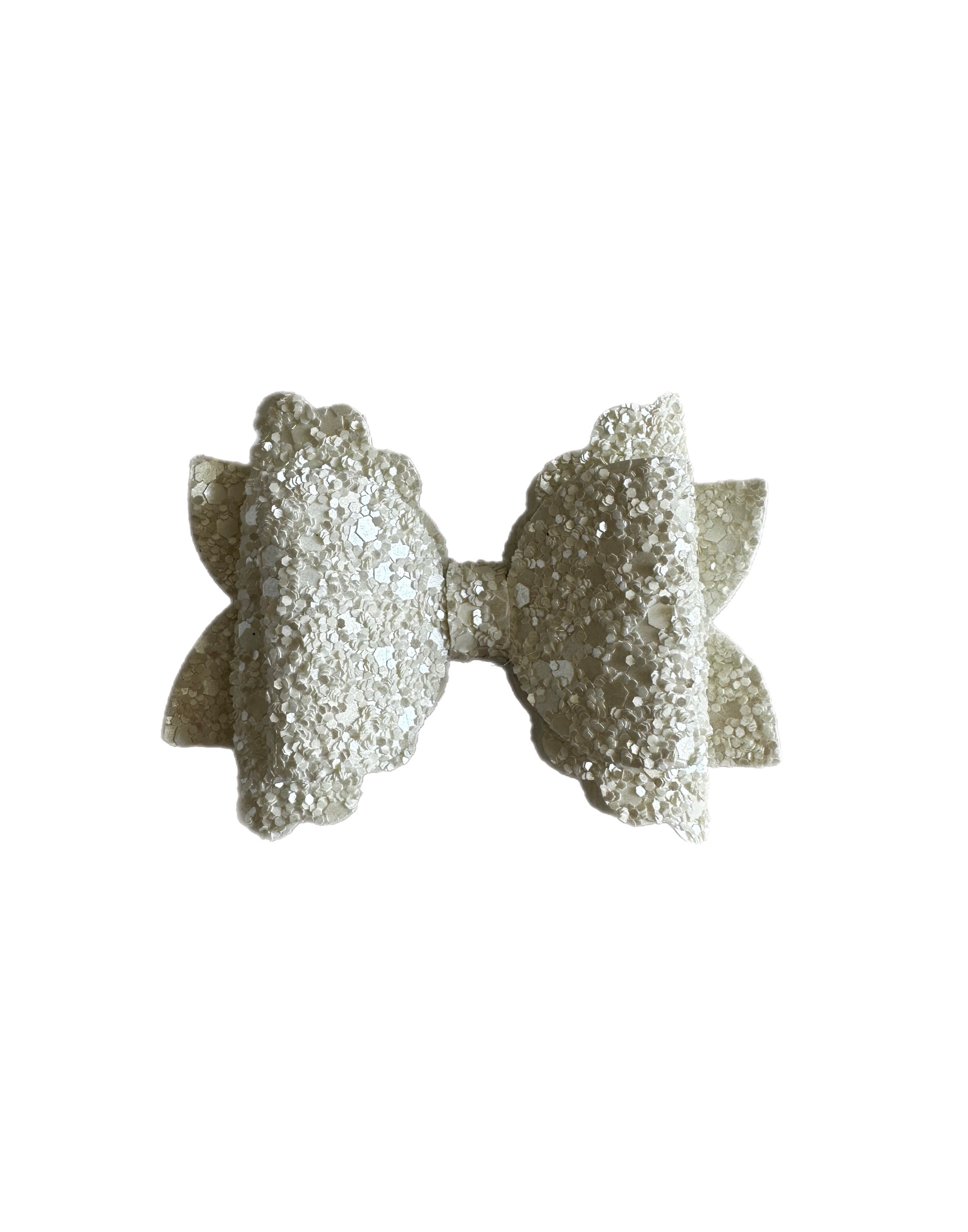 Beautifully hand crafted and handmade, our Snow Princess Single Bow is one to adore. Featuring lovely confetti white glitter, this bow is made to sparkle! This bow will suit any style of hair and comes with an easy to secure alligator clip on the back.