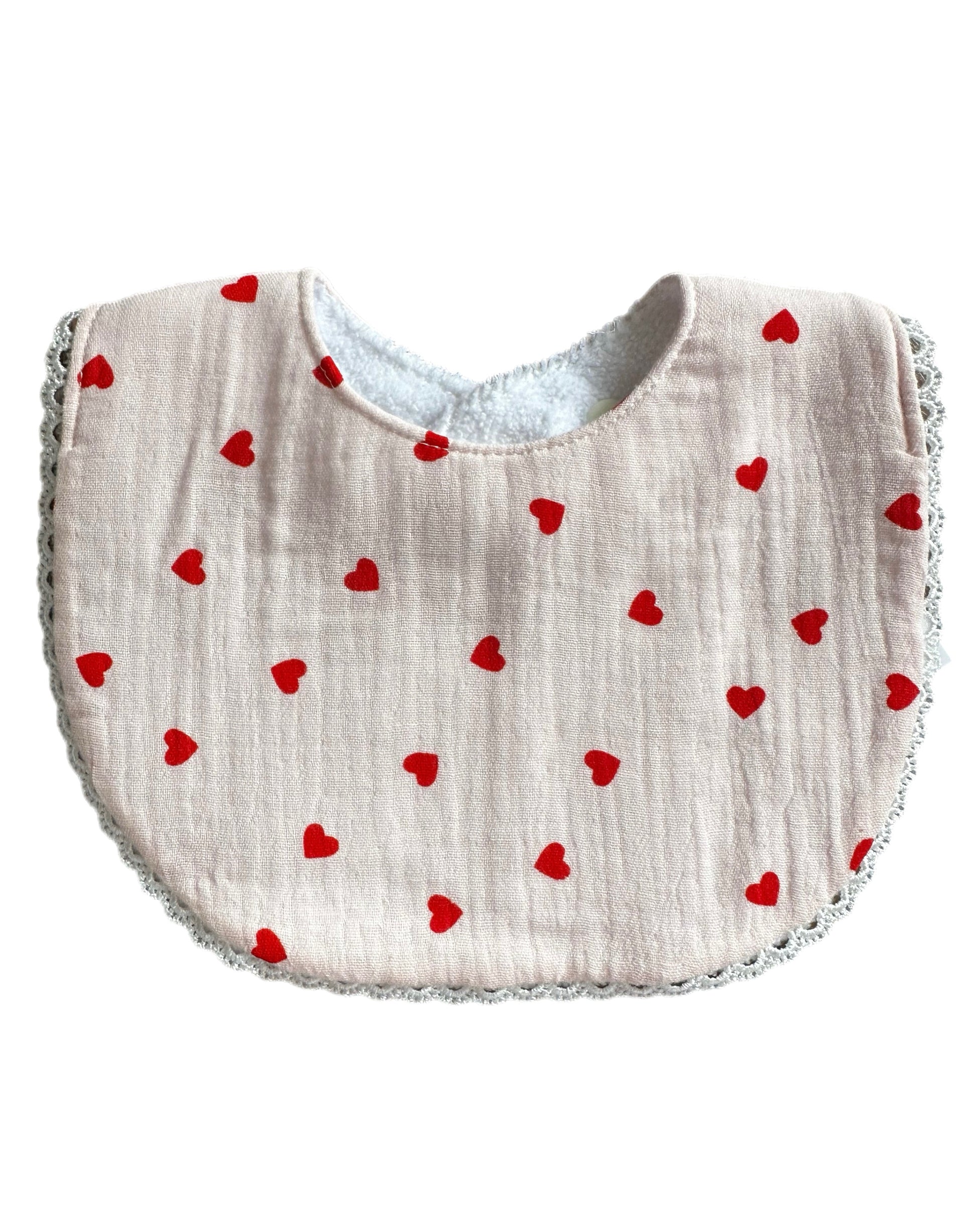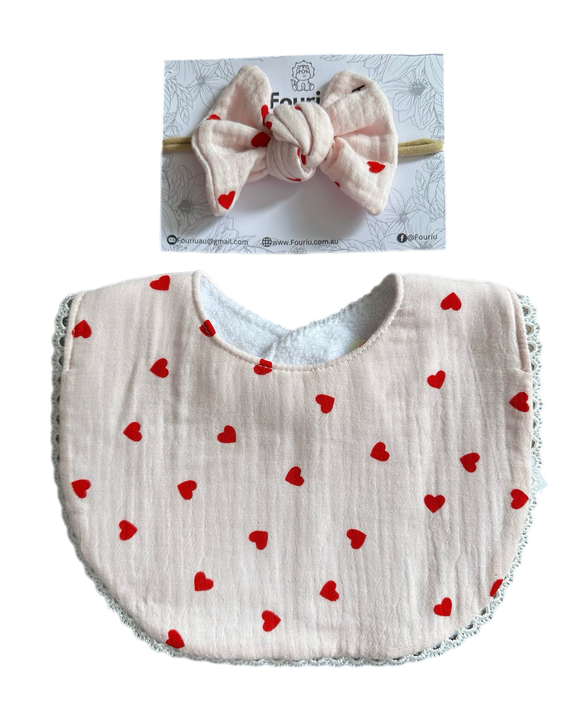 Sofia Laced Bib- Pink Hearts Set | Fouriu