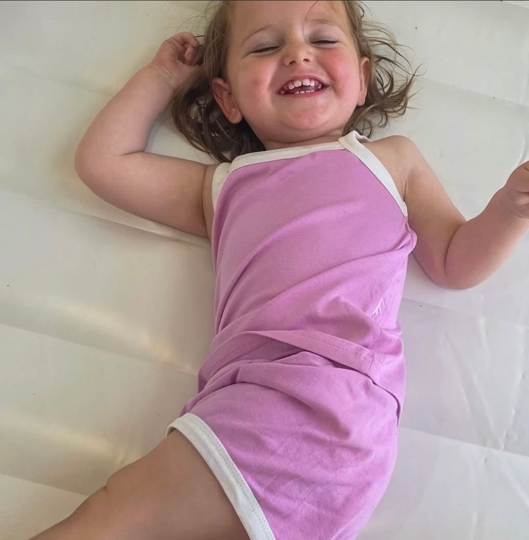 New to our Tutti Frutti Set range is this super soft and lightweight set! Including are a thick strapped singlet top and super adorable shorts to match with an elastic waistband.