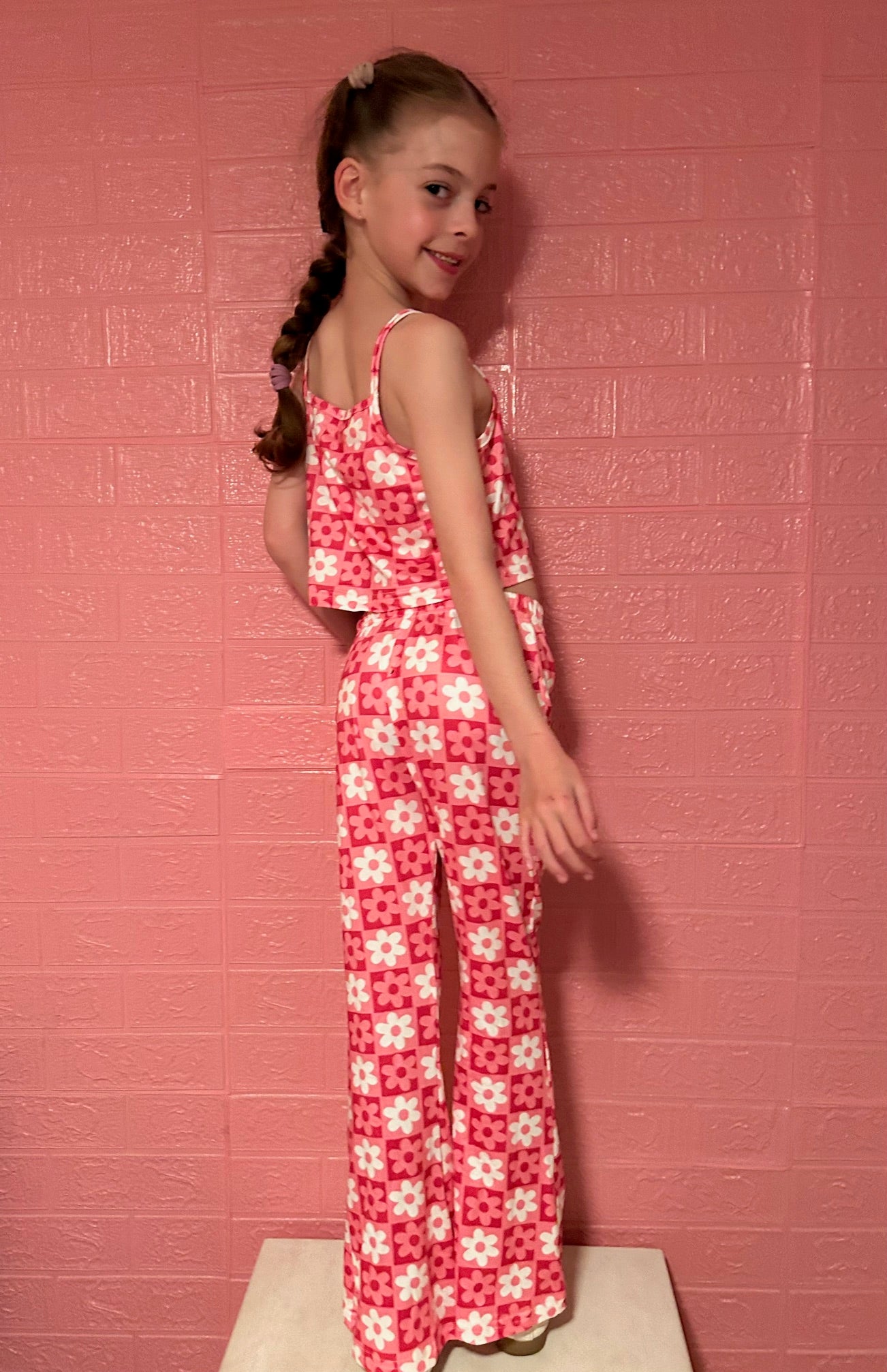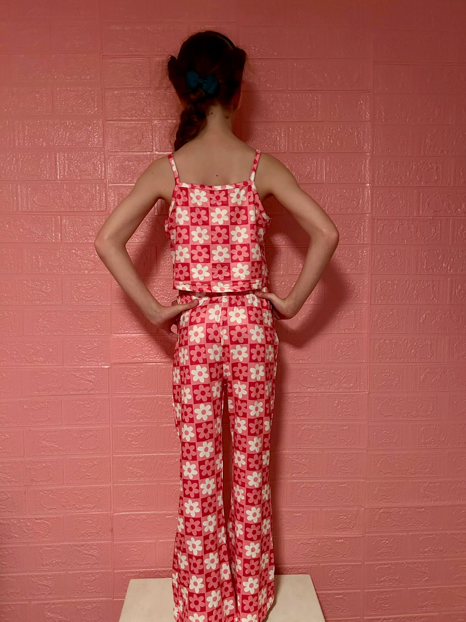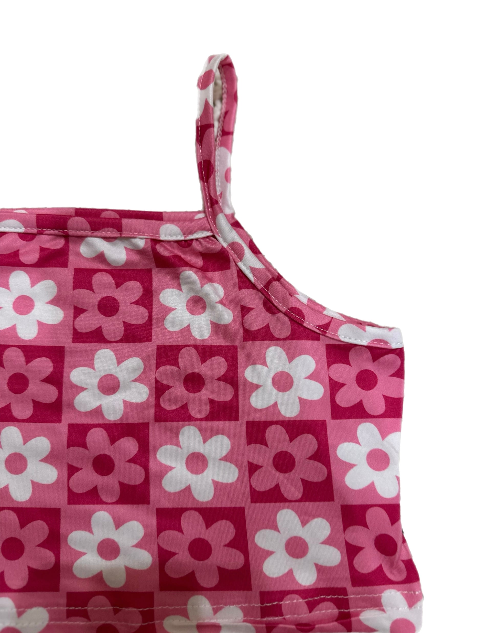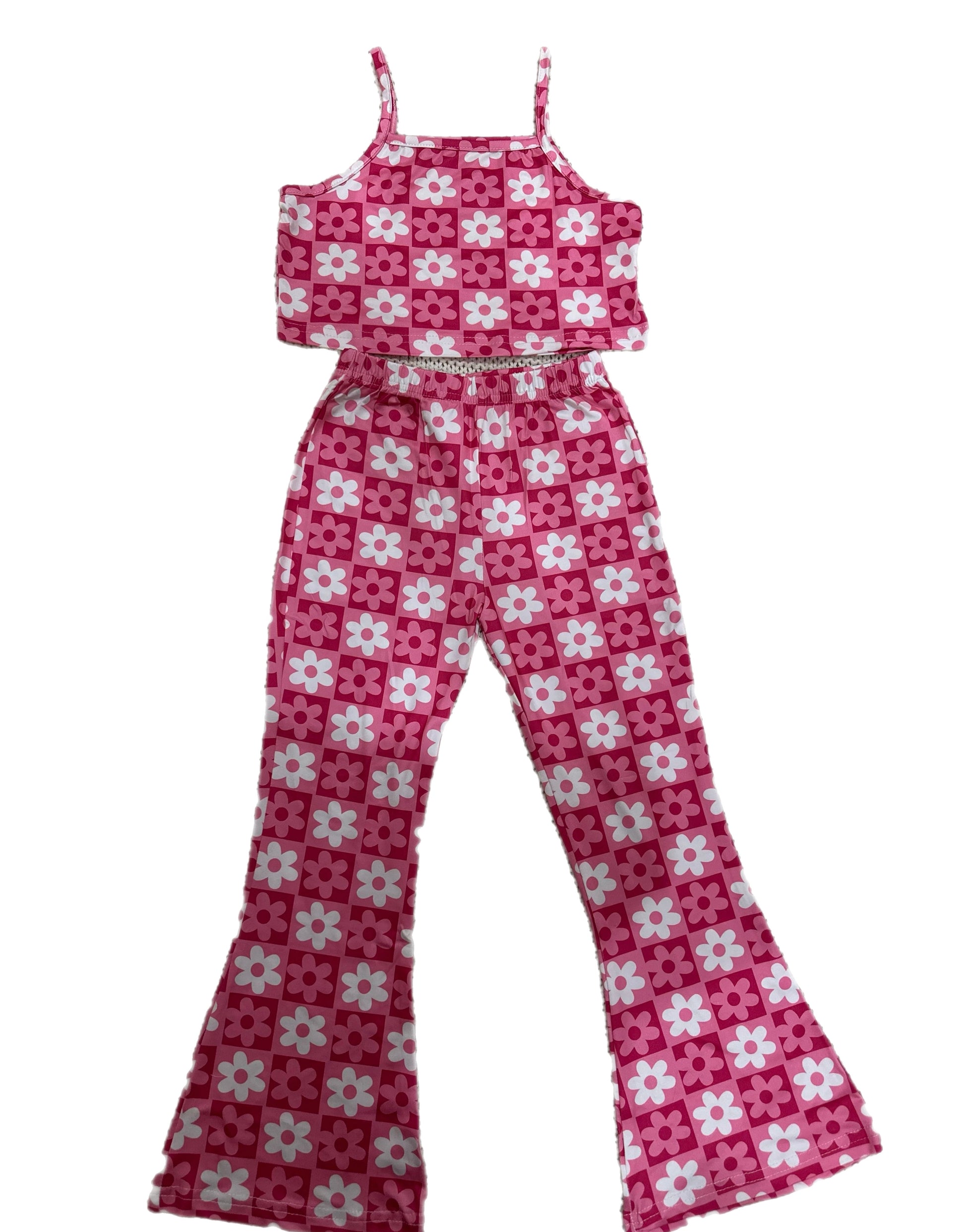 Welcome to our store a brand new addition! Our gorgeous Pink Paradise Cami and Flares Set. This must have set comes with both a cami top and flare pants featuring a white, daisy flower print. Made with light weight, super soft fabric the flares come with an elastic waist band and cami top features spaghetti straps.