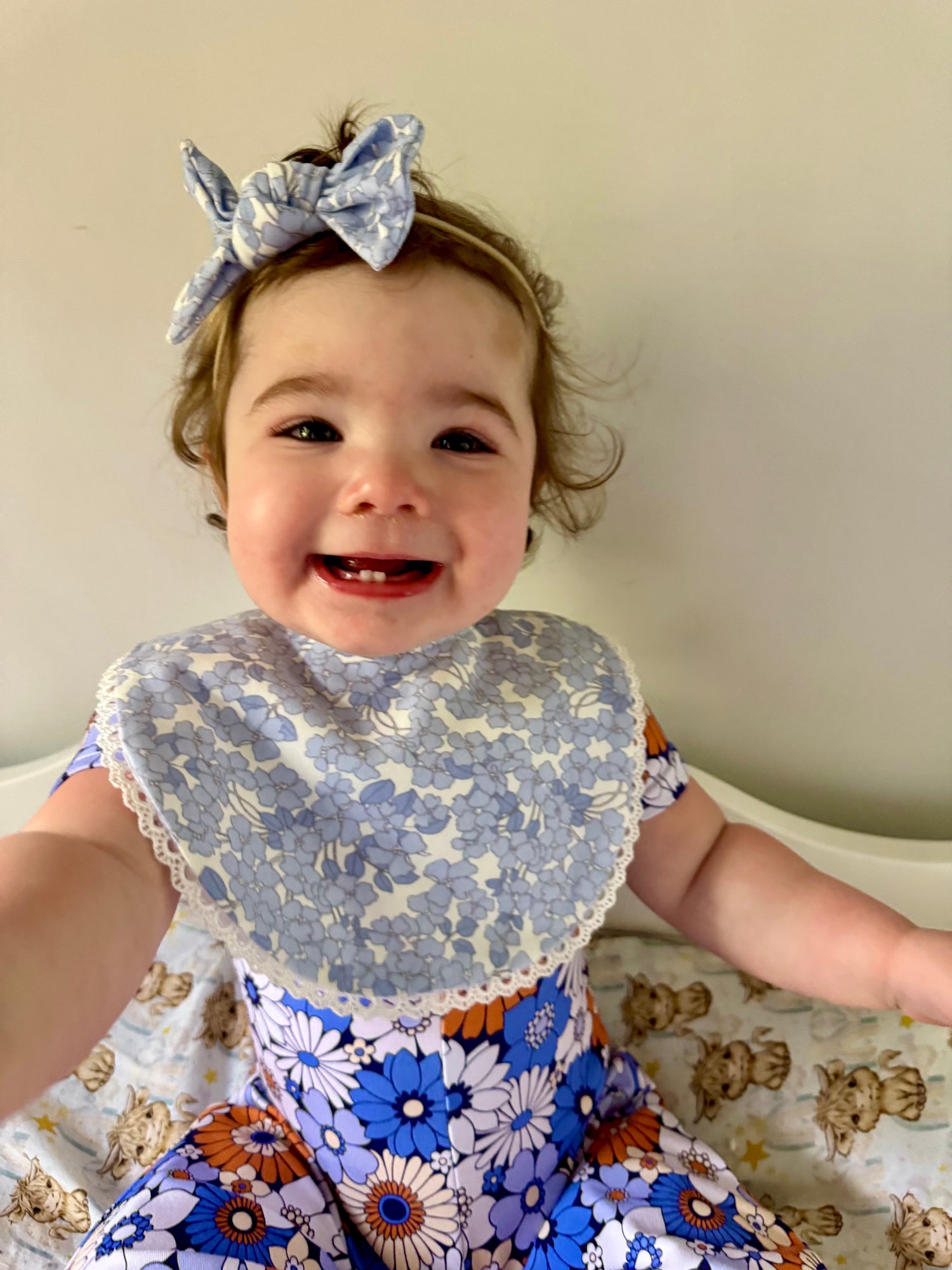 Gorgeous handmade bibs and matching headbands, produced in Australia